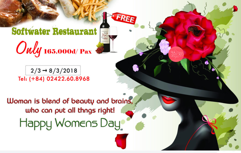 Ngày 8/3 – Ngày tôn vinh vẻ đẹp, nghị lực phi thường và những hi sinh lớn lao của chị em phụ nữ trên toàn thế giới. Hãy dành tặng 1 nửa thế giới một bữa tiệc đầy ý nghĩa tại SoftWater Restaurant