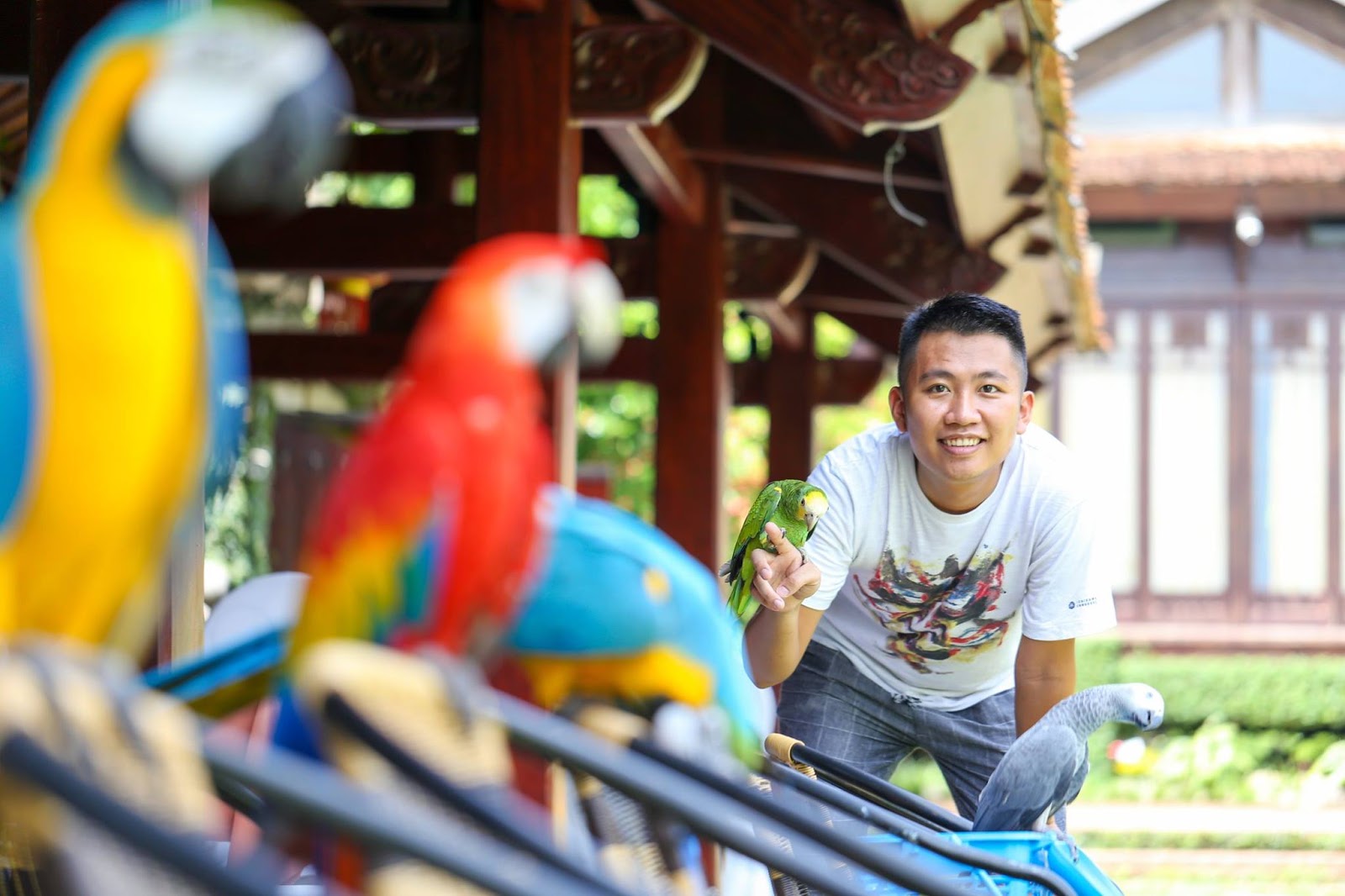 Nhân viên nhà hàng thích thú chơi đùa cùng “các em” vẹt đáng yêu